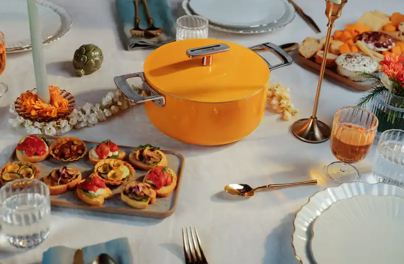 Benares Gold takes its name from the city’s rich heritage of craft, artistry, and colour. Warm, vibrant, and full of energy, the shade reflects Masaba’s philosophy of living joyfully and unapologetically. Designed to shine both in the kitchen and on the table, the collection combines Ember’s world-class performance, non-toxic Arcilla™ ceramic coating, and design-forward aesthetics, making everyday cooking feel special