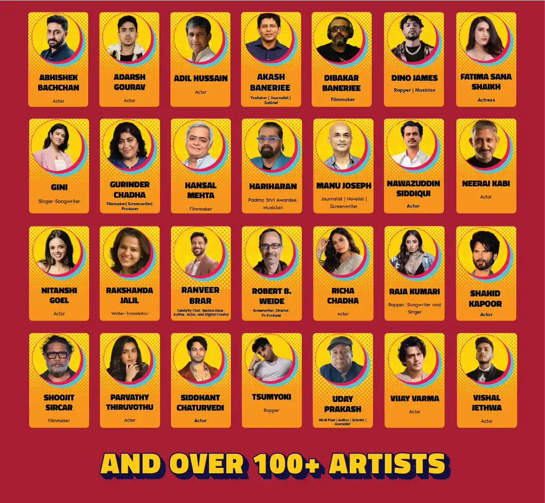 Over the years, IFP has brought together thousands of creative minds, hosting over 1400 speakers, 1.2 Lakh participants, and representation from 8 countries, marking its place among the world’s largest festivals for creative enthusiasts. Over the past 14 years, IFP has hosted prolific creators such as Joseph Gorden Levitt, Tom Schulman (Academy Award Winner, Dead Poets Society), Alexander Payne (Academy Award Winner), Asif Kapadia (Academy Award Winner), Mira Nair (Academy Award Nominee), Ira Glass (Podcaster, Journalist, This American Life), Naseeruddin Shah, Pankaj Tripathi, Javed Akhtar, Ayushmann Khurrana, Rajkummar Rao, Imran Khan, Nawazuddin Siddiqui, Shabana Azmi, Vicky Kaushal, Taapsee Pannu, Sonakshi Sinha, Vijay Varma, Kartik Aryan, Bhumi Pednekar, Vikrant Massey, Adarsh Gourav, R. Balki, Sriram Raghavan, Vikramaditya Motwane, Shakun Batra.