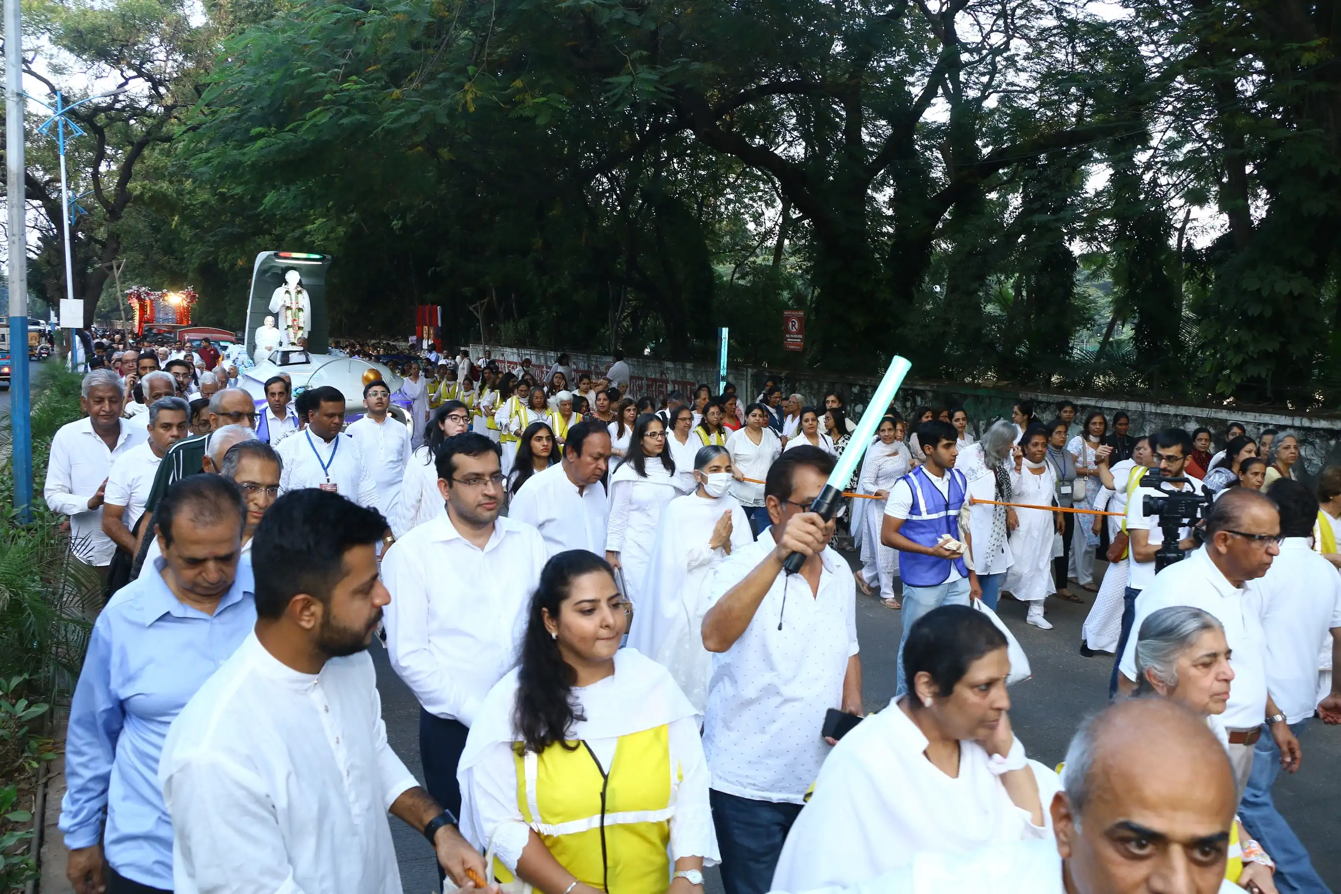 Two halts were made at Pudumjee Compound and Kohinoor Hotel, where Didi Krishna addressed the gathering. She highlighted Sadhu Vaswani’s message of compassion for all, urging people to observe International Meatless Day on November 25 and adopt a lifestyle rooted in non-violence.