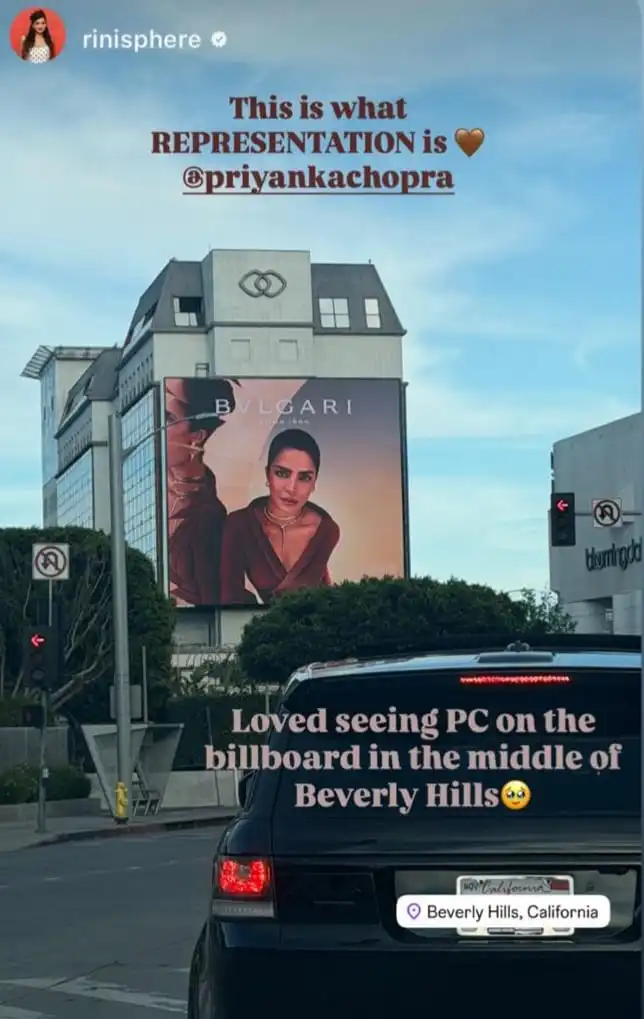 Her latest milestone — a striking Bvlgari billboard in the heart of Beverly Hills — has set the internet ablaze. Captured by digital creator Rini Jain, who wrote, “This is what representation is @priyankachopra,” the moment has struck a chord across social media, symbolising far more than just a luxury campaign. It reflects a journey built on breaking barriers and expanding the idea of who gets to be seen on the world’s biggest stages.